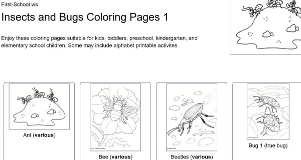 🦗 FREE Insects Coloring Pages for Kids - Read Color and Learn There are 14 different free printable insect coloring sheets for preschoolers, kindergarteners, grade 1, grade 2 and grade 3 students. Use these for free coloring pages are great for extra practice, at school or at home, summer learning, science or insect activity or as part of an extra activity for those who finish their other work early.