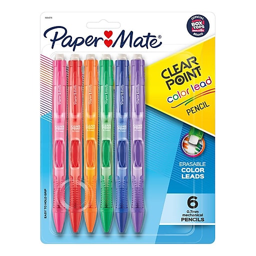 Paper Mate Clearpoint Color Lead Mechanical Pencil, Assorted Colors, 0.7mm, #2 Soft Lead, 6/Pack (1984678)